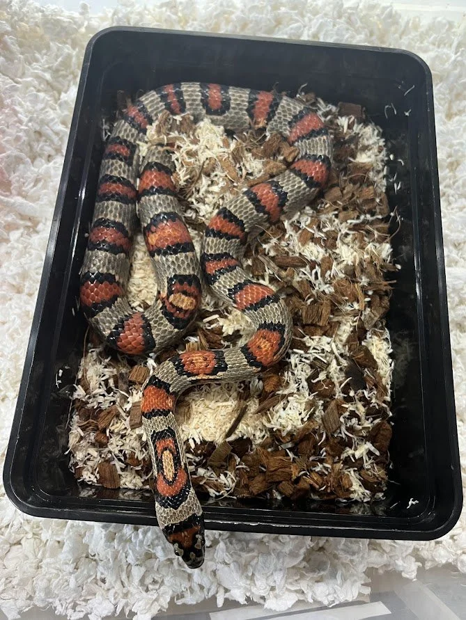 Figure 1: Corn snake Sleeping in cork bark hide.