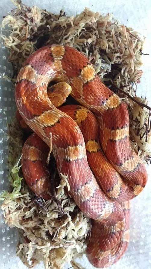 Corn snakes are a small and non-venomous species of colubrids native to America. Their range is wide, from New Jersey down to Florida and into parts of the Midwest. They are adaptable and can utilise a range of habitats such as woodlands, fields, rocky hillsides, farmland and barns. They are semi-arboreal and are efficient climbers, but will also burrow.