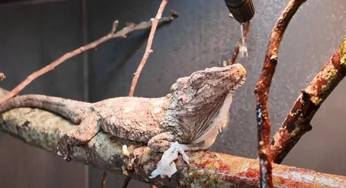 False chameleons are specialized snail eaters, but in captivity they accept a range of feeders.